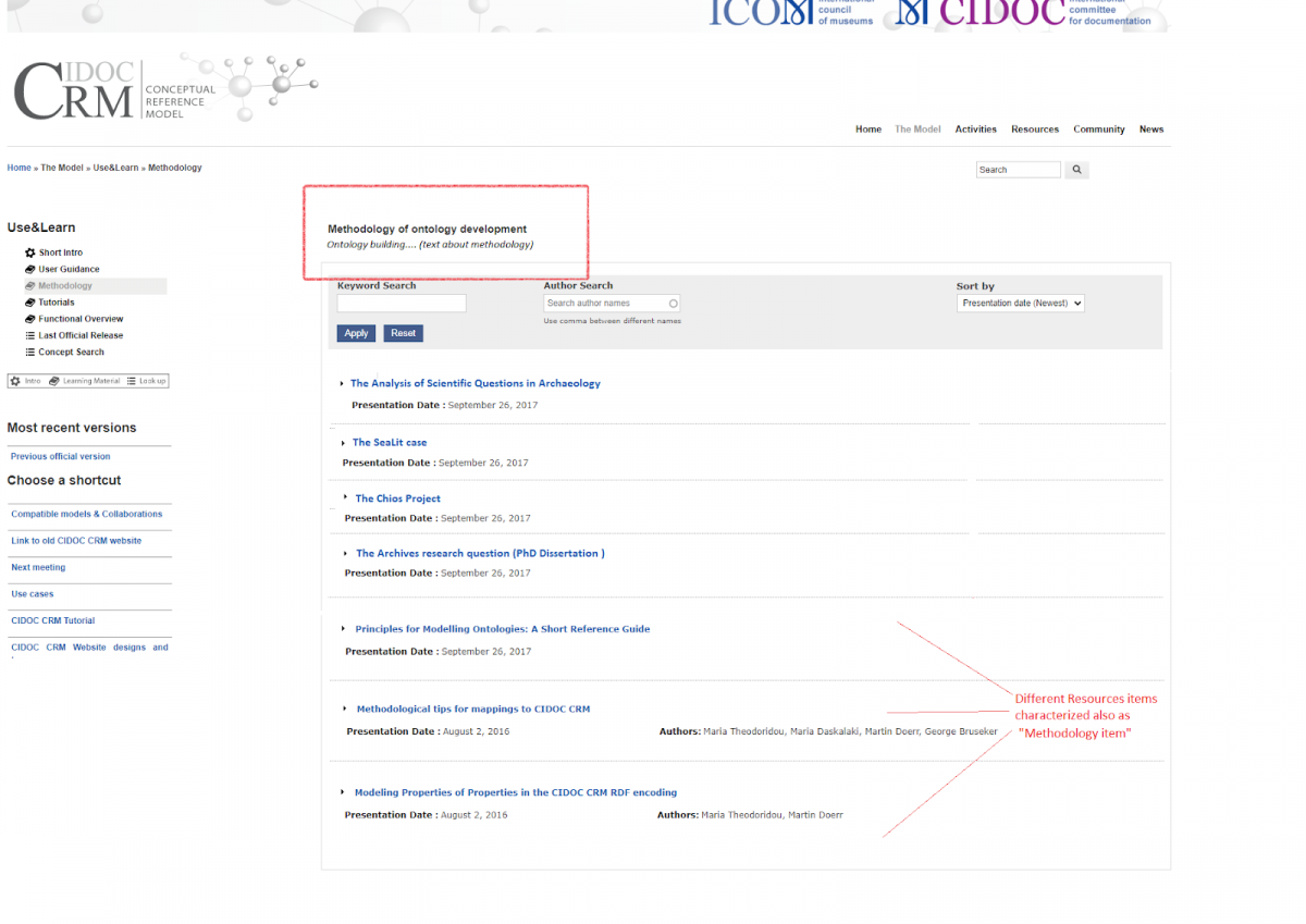 In the 56th joint meeting of the CIDOC CRM and ISO/TC46/SC4/WG9 &49th FRBR/LRMoo SIG, the SIG reviewed the mockup page for “Methodology and research questions supporting ontology building”, found under “Use & Learn\Methodology”. It consists of 4 subsections: