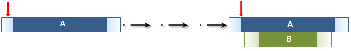 Figure 9: Temporal entity A ends before or with the start of temporal entity B. Here A is longer than B