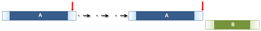 Figure 10: Temporal entity A ends before or with the start of temporal entity B. Here A is shorter than B |