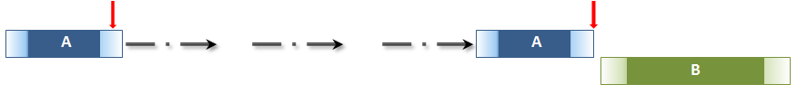 Figure 12: Temporal entity A ends before the start of temporal entity B. Here A is shorter than B |