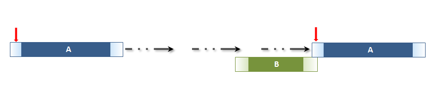 Figure 16: Temporal entity A ends before or with the start of temporal entity B. Here A is shorter than B |